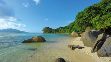 På Malackahalvöns östkust avlöser de finkorniga, vita stränder varandra. De är kantade av djupgrön tropisk regnskog och det inbjudande Sydkinesiska havet.