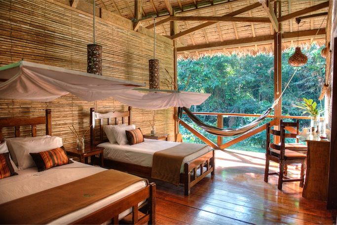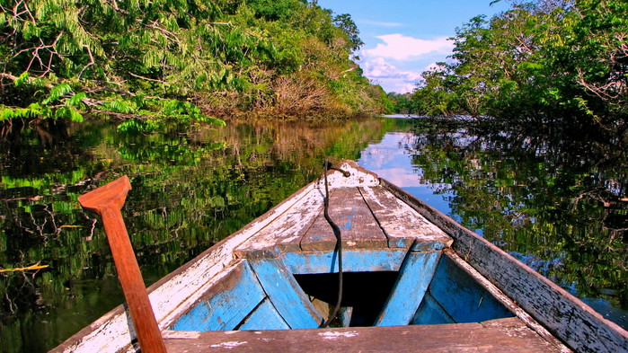 Förmiddagsflyg från Cusco till Puerto Maldonado i Amazonas, öster om Anderna. Lodgens naturguider välkomnar innan den 45 minuter långa motorkanotfärden på Tambopatafloden till regnskogslodgen Posada Amazonas. Den ägs av ese eja-indianerna och ligger vid Tambopatareservatet. Området är känt för fin primärregnskog och rik flora och fauna. De enkla, trivsamma bungalowerna är byggda av material från regnskogen. Den första vandringen i regnskogen leder fram till ett 30 meter högt utkikstorn med fantastisk utsikt över trädtopparna. Här kan man spana efter tukaner, papegojor och andra tropiska fåglar innan det är dags för middag. När mörkret sänker sig berättar de gärna mer om de eko-projekt som pågår i området, både för att bevara den artrika miljön och för att främja lokalbefolkningens livsvillkor.