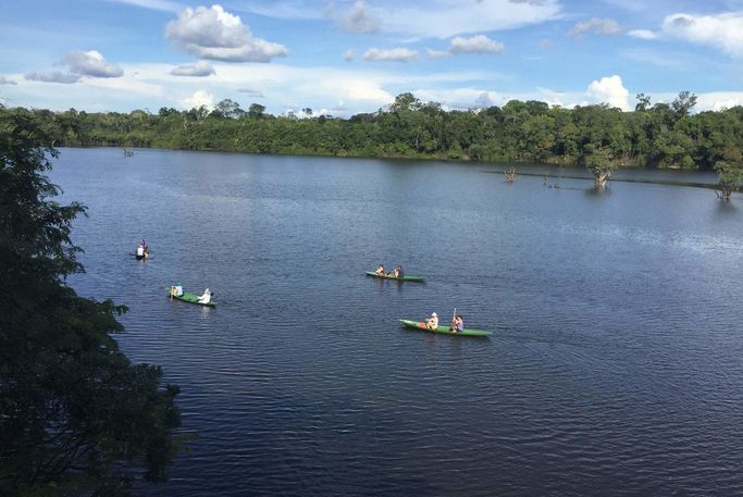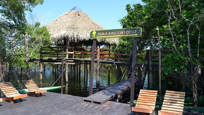Tidig upphämtning på hotellet. Färden är uppdelad på tre färdsätt - med motorbåt, därefter bil/van och avslutningsvis motorbåt igen. Första stopp blir till den del där de två floderna möts och vattnen så distinkt avgränsar varandra, både i färg och temperatur. Fenomenet beror på skillnaderna i just temperatur men även vattentäthet och hastighet. Vid lunchtid är Juma Amazon Lodge nådd. Under eftermiddagen görs en kanotfärd för att bekanta sig med omgivningen. Den som vill kan ta ett dopp och möjligtvis se den rosa delfinen. Åter till lodgen för middag och på kvällen görs ytterligare en flodfärd för att främst spana efter kajmaner men även andra djur. Övernattning på Juma Amazon Lodge.