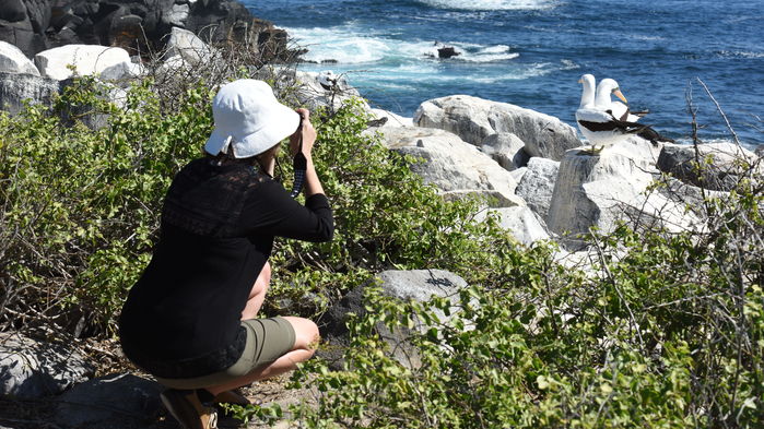 Den yngsta ön i gruppen hyser en stor koncentration av de gåtfulla havsleguanerna där de vilar ovanpå varandra. Den vulkaniska terrängen tilltalar både havs- och landleguanen. En gång i tiden har även pingvinen letat sig upp till övärlden och längs samma kust finns idag galápagospingvinen. Ett annat djur som anpassat sin tillvaro här är galápagosskarven vars vingar, genom evolution, har fått en större nytta som fenor än till flygning. 1,5 timmars promenad. Åter på Isabel lägger vi till vid Punta Vicente Roca och med våra små båtar studera havsfåglar som Nazcasulan. Här går vi inte iland. Snorklingen anses vara utmärkt.