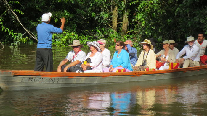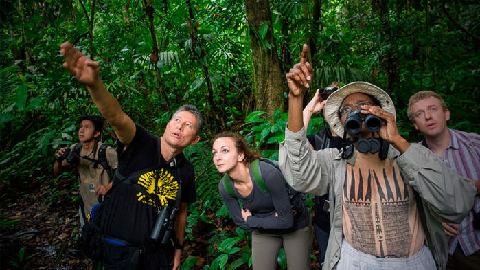 Vandring i gryningen genom regnskog för att uppleva det vaknande djurlivet. Tropiska fåglar och fjärilar kan ses i grönskan. Efter lunch fortsätter promenaden tillsammans med den kunniga guiden som delar med sig av kunskaper om regnskogens medicinalväxter och komplexa ekosystem. Åter till lodgen för vila i hängmattan eller provsmaka tropisk juice. På eftermiddagen blir det ännu en naturvandring för fler djurobservationer. När mörkret faller väntar en kanottur för att uppleva de nattaktiva djuren.
