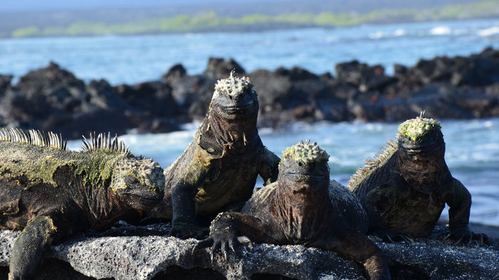 Dag 5. Urtidsdjur på Fernandina. Rutt B. Den yngsta ön i gruppen hyser en stor koncentration av de gåtfulla havsleguanerna där de vilar ovanpå varandra....