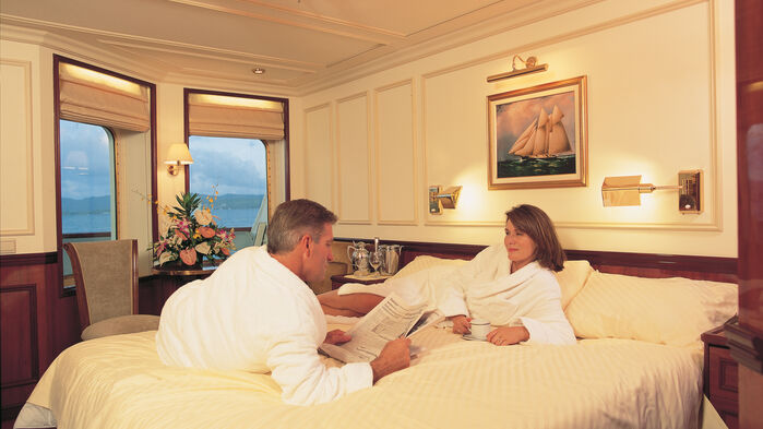 Jambo Tours har reserverat 15 hytter ombord på fartyget. Hytterna, på 13,5 kvm, har badrum med dusch. Grundpriset avser kategori 4, belägen på Commodore Deck, medan uppgraderingar till kategori 3 och 2 på Clipper Deck är möjliga. Deluxesviterna, med badrum inklusive jacuzzi och balkong, finns på Main Deck och mäter 26 kvm inklusive balkongen.