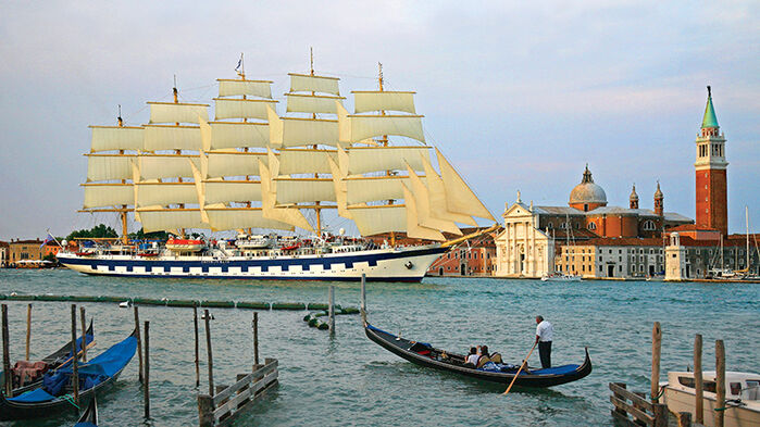 Kryssa i en unik övärld ombord på världens största segelfartyg, fullriggaren Royal Clipper. Resan inleds med ett par innehållsrika dygn i kanalernas och romantikens stad, Venedig. Vi hinner med sightseeing bland sevärdheterna runt Markusplatsen och ser Dogepalatset och Basilica San Marco vars fasad är dekorerad med byzantinska mosaiker. Under en tur med privat båt på kanalerna promenerar vi bland de pastellfärgade husen på ön Burano och ser mosaikerna från 1100-talet i katedralen Santa Maria di Assunta på ön Torcello.Vi går ombord på Royal Clipper i Venedigs kryssningshamn och eftersom Royal Clipper är ett segelfartyg tillåts fartyget stilla glida förbi adelspalatsen längs Canal Grande på väg ut i Adriatiska Havet, en mäktig upplevelse.