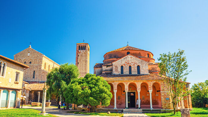 Fredagen den 14 augusti. Utflykt till öarna Burano och Torcello. Efter frukost skall vi tillsammans med vår lokala guide göra en utflykt med chartrad båt. Vi inleder med att besöka det pittoreska Burano där man fortfarande kan se de äldre damer som knypplar de omtalade venetianska spetsarna. Burano var känd redan på 400-talet då ön skyddade Venedig från anfallet av Attila och hans hunner. Vi strosar runt bland färgglada hus längs Buranos kanaler och man känner att här har tiden nästan stått stilla. Vi fortsätter till ön Torcello som efter det romerska rikets sönderfall snabbt befolkades och blev en viktig handelsplats och som religiöst centrum. Kyrkan La Basilica di Santa Maria Assunta uppfördes på 600-talet och är en av de äldsta religiösa byggnaderna i Venedig. Kyrkan är ett strålande exempel på venetiansk-bysantinsk arkitektur och vi ser mosaiken Den Yttersta Domen från 1000-talet och pelare av grekisk marmor. Ön Torcello är numera ett utflyktsmål med få fasta invånare och vi avrundar besöket med att äta lunch på en restaurang vid kanalen. Senare på eftermiddagen tar båten oss tillbaka till Venedig och det blir en afton på egen hand. Kanske med nyvunna vänner? [F.L]