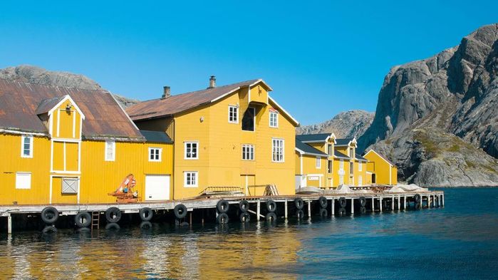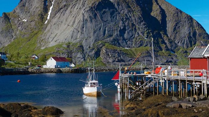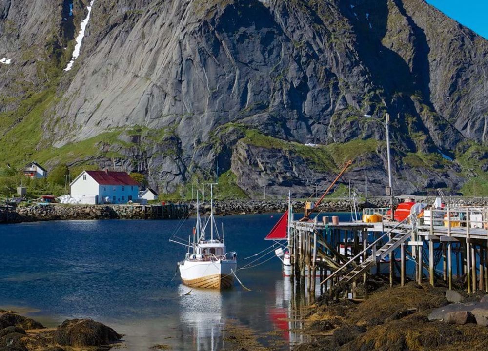 Dag 2. Vedøya - Reine. Efter frukost gör vi en första färd i våra stabila gummibåtar (Zodiacer) runt spektakulära Vedøya, där vi har chans att se häckande havsfåglar, såsom den karaktäristiska lunnefågeln. Här syns ibland även havsörn. Vår färd går utefter sydsidan av det som i folkmun kallas Lofotväggen, en vidsträckt samling bergiga öar som ståtligt reser sig ur havet. Vi går iland och utforskar den lilla fiskebyn Reine som stillsamt blickar ut över Kirkefjorden. Reine har, med sina karaktäristiska trähus inramade av dramatiska bergstoppar, röstats fram till Norges vackraste plats. Här beger vi oss även ut i våra gummibåtar för att utforska omgivningarna.