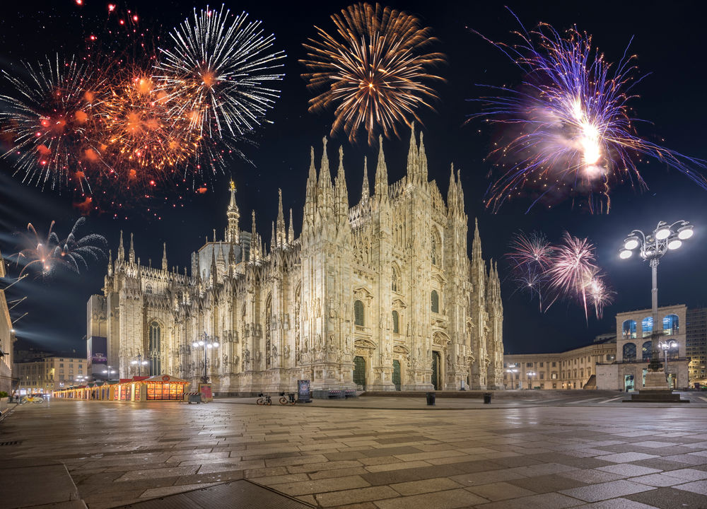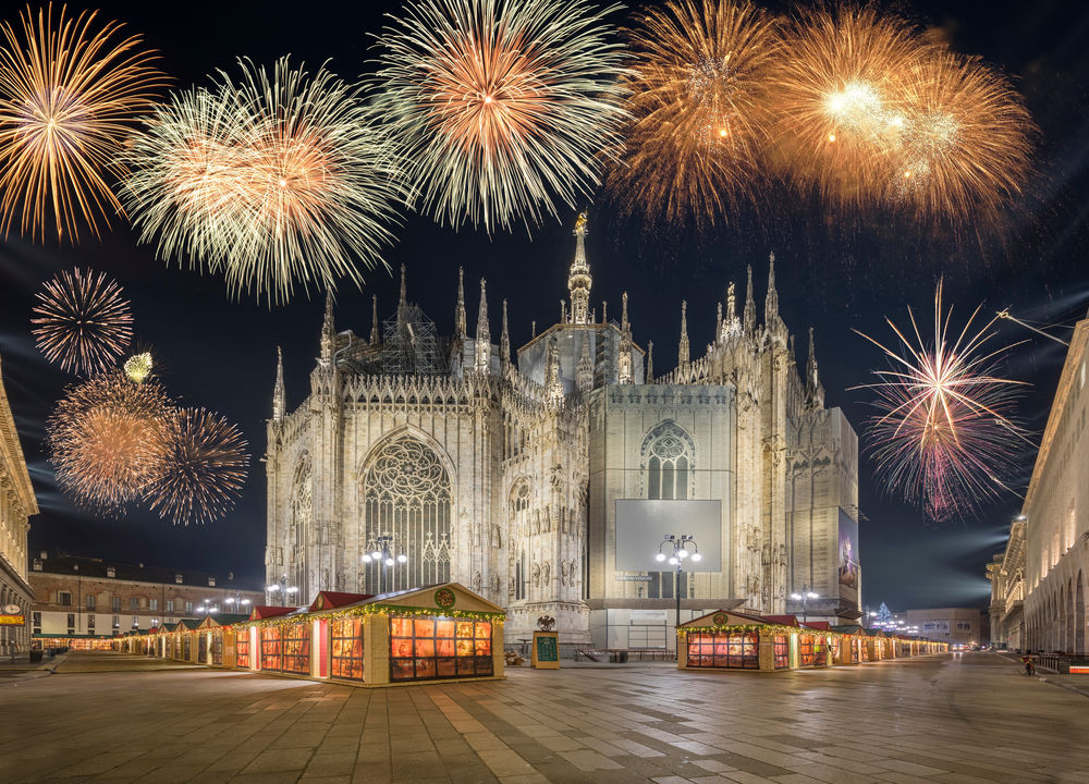 Efter föreställningen promenerar vi till restaurangen Locanda alla Scala där vi serveras en fyrarätters nyårssupé med gott vin. Vid midnatt skålar vi in det nya året med pärlande dryck och önskar varandra lycka. När vi vandrar hem till hotellet genom natten beundrar vi de färggranna fyrverkerierna som lyser upp Milano. Gott Nytt År!