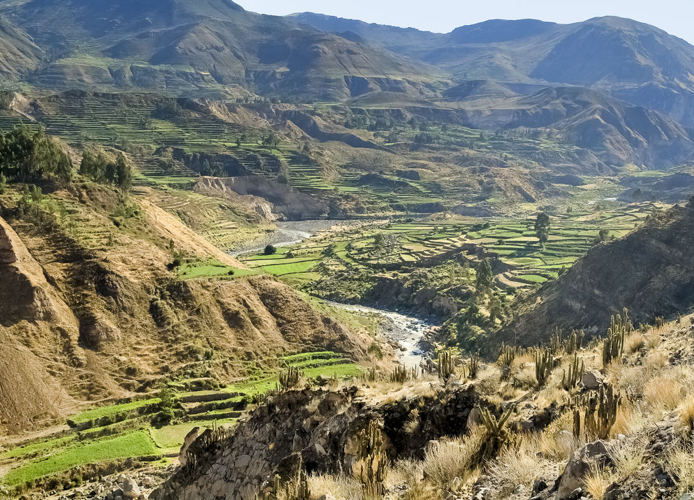 Dagens resa går till den spektakulära Colcadalen, som omges av snöklädda vulkaner. Vägen slingrar sig genom naturreservatet Salinas och förbi en rad små byar. Här betar lamadjur och alpackor längs vägkanterna. Vi stannar längs vägen dels för en uppfriskande kopp coca-te och dels för ett fotostopp vid resans högsta punkt, 4 900 m ö h med utsikt över vulkanerna. På eftermiddagen anländer vi till den lilla staden Chivay där vi stannar för natten.