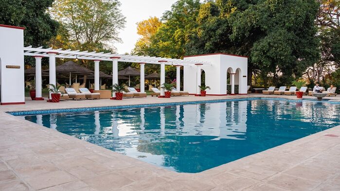 Dag 6. Ankomst till Victoria Falls. Upphämtning vid ankomst till Victoria Falls och privat transfer till hotellet, ikoniska Victoria Falls Hotel med utsikt...
