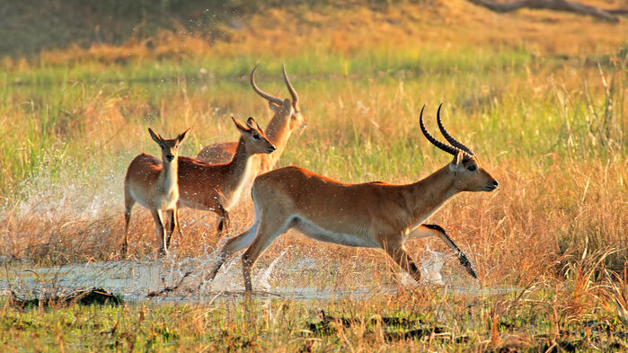 Okavangodeltat skapas av sötvatten som rinner in norrifrån från Angola och svämmar över öknen i otaliga större och mindre vattendrag, som utgör ca 15 000 km² stort område. Här kan man verkligen säga att öknen blommar. Vegetationen är mycket varierande från öppna gräsbevuxna ängar inramade av tätt buskage till lundar av höga mopane- och ebenholtsträd, och vatten i form av stillsamma bäckar eller åar till större öppna och grundare sjöar. Här sjuder det av liv i alla storlekar. Störst är elefanterna som är svåra att undvika och ljudligast är flodhästarna och grodorna som gymtar, bräker och kluckar.