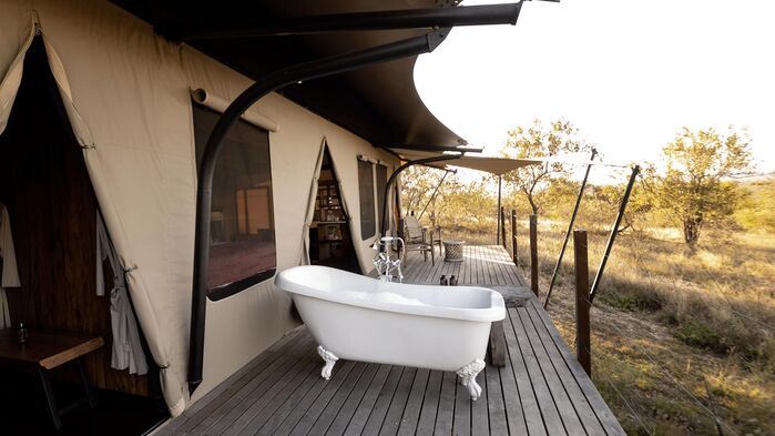 Efter frukost går transferbussen tillbaka till flygplatsen, flyg till Hoedspruit och vidare färd till MCH Tented Camp,en tältlodge med fyra safaritält i autentisk afrikansk safaristil. Beläget på en liten kulle har MCH fantastisk utsikt över Makalali och Drakensberg Mountains. De fyra tälten är utrustade med luftkonditionering, WiFi och har egna badrum med både badkar och duschar, både inomhus och utomhus. Varje tält har en välfylld minibar och en lounge som öppnar upp mot ett privat däck. Lägret är självförsörjande och drivs helt med solenergi.