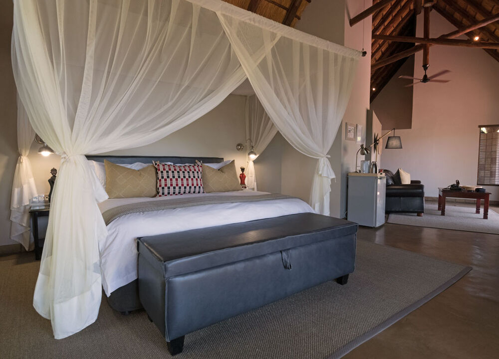 Här kan man göra tvÃ¥ dagliga safariturer och en bushwalk per dag. Eftersom lodgen ligger vid en torr flodbädd är omrÃ¥det särskilt bra för leoparder, som föredrar flodomrÃ¥den och tätare växtlighet. För fÃ¥gelintresserade finns det mer än 300 arter att upptäcka. Varje safari varar i tre timmar och leds av en erfaren ranger och en lokal Shangaan-spÃ¥rletare som delar med sig av sin kunskap om bushen. Under morgonsafarin bjuds man pÃ¥ kaffe och hembakade kex, och pÃ¥ eftermiddagen hittar rangern en plats för att njuta av utsikten och en sundowner. Efter solnedgÃ¥ngen spanar man efter nattaktiva djur innan det är dags att Ã¥tervända till lodgen för middag.