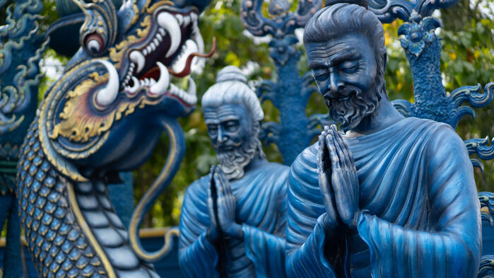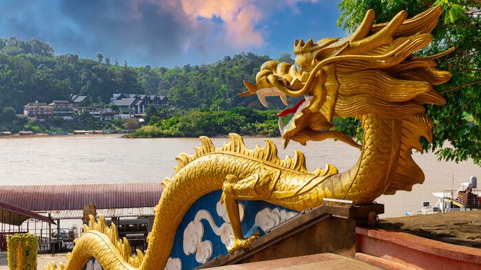 Dag 6. Prunkande trädgård och den gyllene triangeln. Efter utcheckning från hotellet åker ni vidare till ytterligare ett heligt tempel, Wat Rong Seua Ten, även kallat det blå templet. Detta tempel byggdes upp från tempelruiner av bybefolkningen och allt stod klart 2016. Skaparen är en av eleverna till khun Chalermchai och templet har blivit en del av Chiang Rais "art route”. Under dagen blir det sedan besök vid den översvallande och prunkande kungliga trädgården Doi Tung. Här bjuds på lunch men givetvis även på blomsterprakt, men även möjlighet till en kortare vandring i regnskogsmiljö. Vidare mot det så kallade treriksröset där Thailand möter både Burma och Laos. Platsen är även känd som den Gyllene Triangeln för den illegala handel som i århundranden har skapat lukrativa vinster i området. Slutmålet för dagen är Chiang Saen, en liten hamnstad vid Mekong med utsikt mot Laos. En middag med lokala toner serveras på hotellet  [F-L-M]