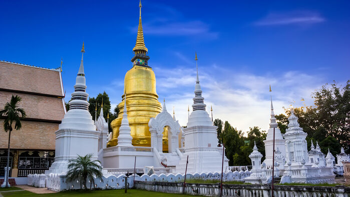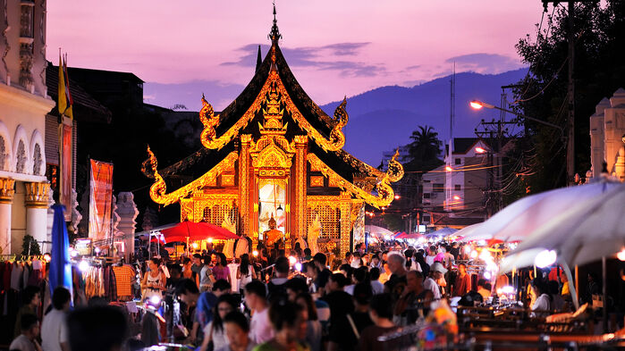 Under dagen kan man göra en kortare promenad i Chiang Mais trendiga Nimmanhemin-område tillsammans med guiden för att få en bättre överblick över vad området har att erbjuda. Känner man sig riktigt pigg kan man fortsätta promenaden till Wat Suan Dok (ca 4 km fram och tillbaka) - ett levande tempelområde med buddhistiskt universitet, där omväxlande kalkvita och guldfärgade pagoder tronar mot himlen. Hit fördes en gång norra Thailands kungar till sin sista vila. På kvällen serveras en välkomstmiddag med thailändska smaker på hotellet.