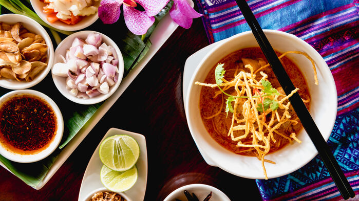 Dag 3. Chiang Mai. På morgonen är det dags för en utflykt till Lilla Indien och Chinatown i Chiang Mai. Här ligger guld och tyghandlarna vägg i vägg och ni besöker Warorotmarknaden med sina klädgrossister, fruktförsäljare och inte minst delen där blommor säljs. Vidare på en samlortur med traditionell cykeltaxi in i gamla stan. Här hittar man Wat Chedi Luang med sitt delvis raserade tempeltorn. Detta var i det historiska Chiang Mai ett gigantiskt monument som vittnade omväxlande om buddhistisk fromhet men även politisk makt. Det lilla folklivsmuseet i gamla stan ger möjlighet att lära mer om nordthailändsk kultur och livsstil. Lunchen består idag av en för området typisk lunchrätt, nudelcurrysoppan Khao Soi, som har sina historiska rötter i både kinesisk och burmesisk mattradition.