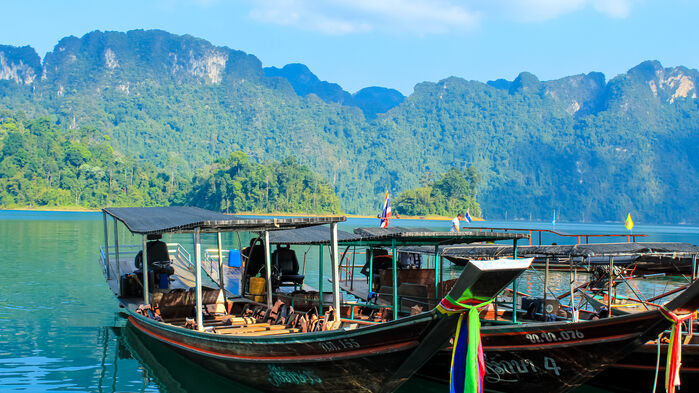 Efter frukost går färden till Khao Sok National Park, ett häpnadsväckande djungelområde med tropisk regnskog som är södra Thailands största sammanhängande skogsområde. Eftermiddagen spenderas med en båtresa på sjön Cheow Lan med stopp för lunch på en lokal restaurant. Här och var sticker karstformationer upp och ger hela området en känsla av asiatiskt sagolandskap. Väl tillbaka på den rogivande lodgen finns det tid för avkoppling. Här i den tropiska regnskogen har djur och växter anpassat sig – antingen till en mörk och fuktig tillvaro i markplan eller till ett liv högt uppe bland trädkronorna. Regnskogens mäktiga valv skymmer stark sol och cikadornas visslande surr i träden skapar en magisk stämning tillsammans med grodkonserten som man hör då och då.