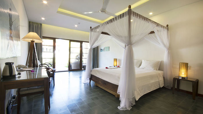 58 rum i olika kategorier i både den nya och äldre delen av hotellet. De äldre tillhör det tidiga residensets olika delar med tidsenlig charm medan den nya har en modern inredning som återspeglar hotellets karaktär. Rumskategorin Modern Deluxe är rymliga på 50 kvm med gratis wifi, himmelssäng, minibar, takfläkt, luftkonditionering, kaffe/tekokare, gratis dricksvatten.