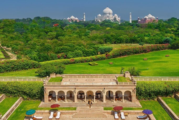 The Oberoi Amarvilas är ett femstjärnigt lyxhotell i Agra, med utsikt över det ikoniska Taj Mahal från samtliga rum och sviter. Hotellets arkitektur är inspirerad av mogulpalats och omges av lummiga trädgårdar, fontäner och spegelblanka pooler, vilket skapar en atmosfär av tidlös elegans. Under vistelsen kan gästerna njuta av exklusiva faciliteter, inklusive ett lyxigt spa, en utomhuspool och restauranger som serverar både indiska och internationella rätter. Hotellet erbjuder dessutom unika upplevelser såsom privata middagar med utsikt över Taj Mahal.